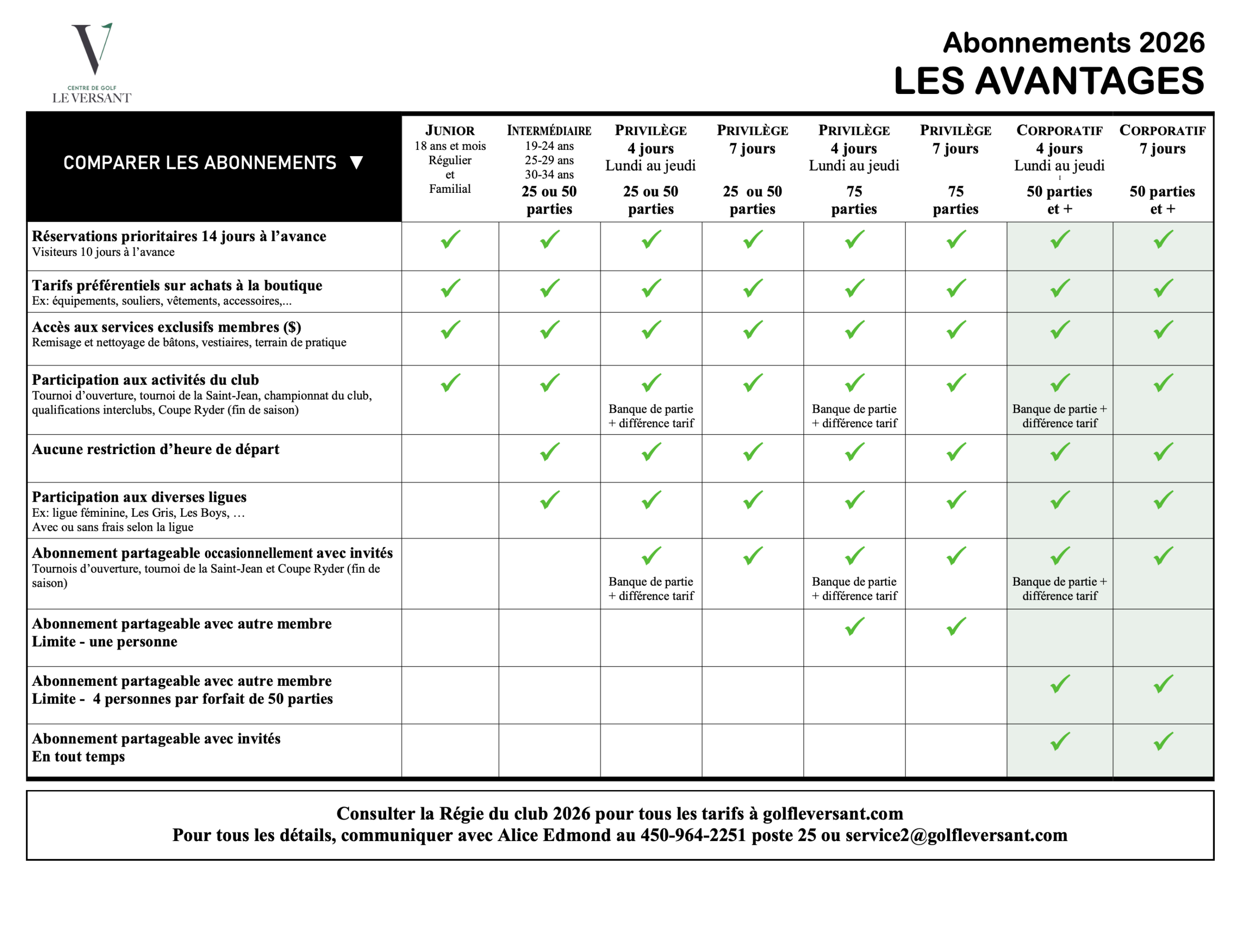 Obtenez toutes les informations sur les prix, les avantages et les conditions d’un abonnement corporatif en téléchargeant la Régie du club.